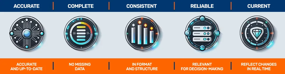 High-quality data in logistics refers to information that is accurate, complete, consistent, reliable, and current. This includes data on orders (order number, delivery date, delivery address), transport data (vehicle type, load capacity, license plates, operator data), tracking and monitoring data (real-time location, goods status, estimated date and time of delivery), cost information (transport, storage, or handling), customer satisfaction data (satisfaction level, service quality), among others.