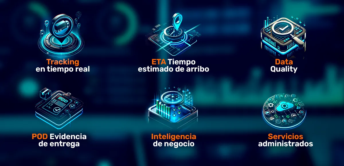 - Tracking en tiempo real. Plataformas de visibilidad logística multimodal en tiempo real que brindan información al momento que la operación está sucediendo, trazabilidad de las unidades e identificación de aquellos viajes que tienen riesgo de llegada tardía. La ETA (estimated time of arrival) es un claro ejemplo de la capacidad de calcular un tiempo estimado de arribo de las unidades utilizando datos de calles y carreteras por las que las unidades de carga pueden circular para brindar datos más precisos para la llegada de camiones.